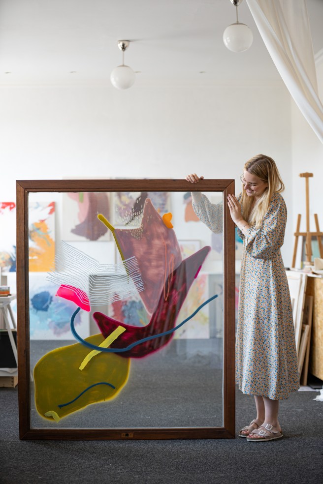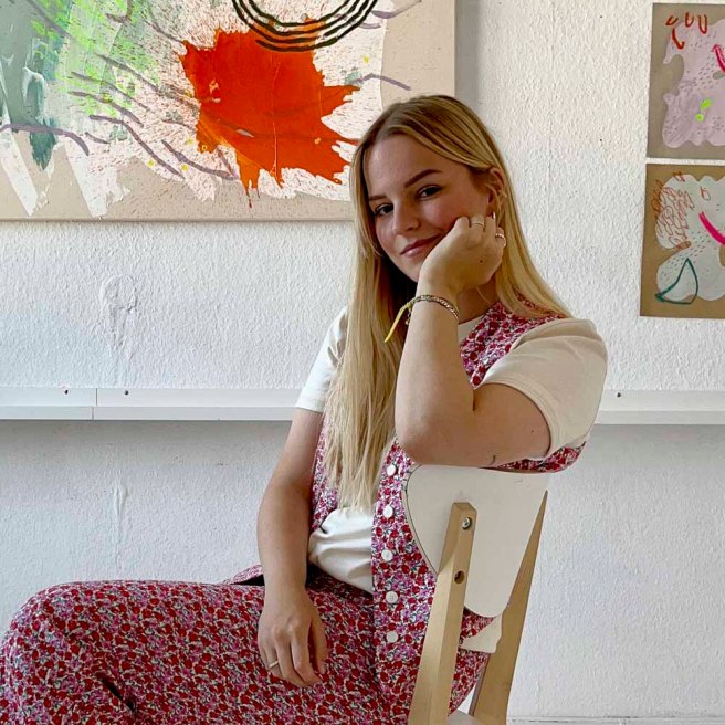 Minou Martin beschäftigt sich in ihrer aktuellen Kunst sehr stark mit Farben und Formen. Diese sind inspiriert von Gefühlen, Musik, Landschaften, Natur, Bergen oder Wasser. Ihr Arbeitsprozess ist intuitiv, sensibel und spontan. Ihre Werke erzählen eine Geschichte und laden zum langen Hinschauen und erkunden ein. Minou studiert seit 2017 Kunst an der bergischen Universität Wuppertal. Ihre Faszination für Farbe entdeckte sie aber schon in Kindertagen. Sie besuchte mit 6 Jahren eine Malschule in Wuppertal und im Laufe der Zeit standen immer wieder Aufträge an wie das Bauen und Malen von Bühnenbildern oder das Gestalten von T-shirt’s und Plakaten, Websites oder Flyern. Minou Martin ist eine junge Künstlerin, die mit Vernissagen in ihrem Atelier und Ausstellungsplätzen wie bei der WoGA 2022 neue Schritte in die Kunstlandschaft geht.