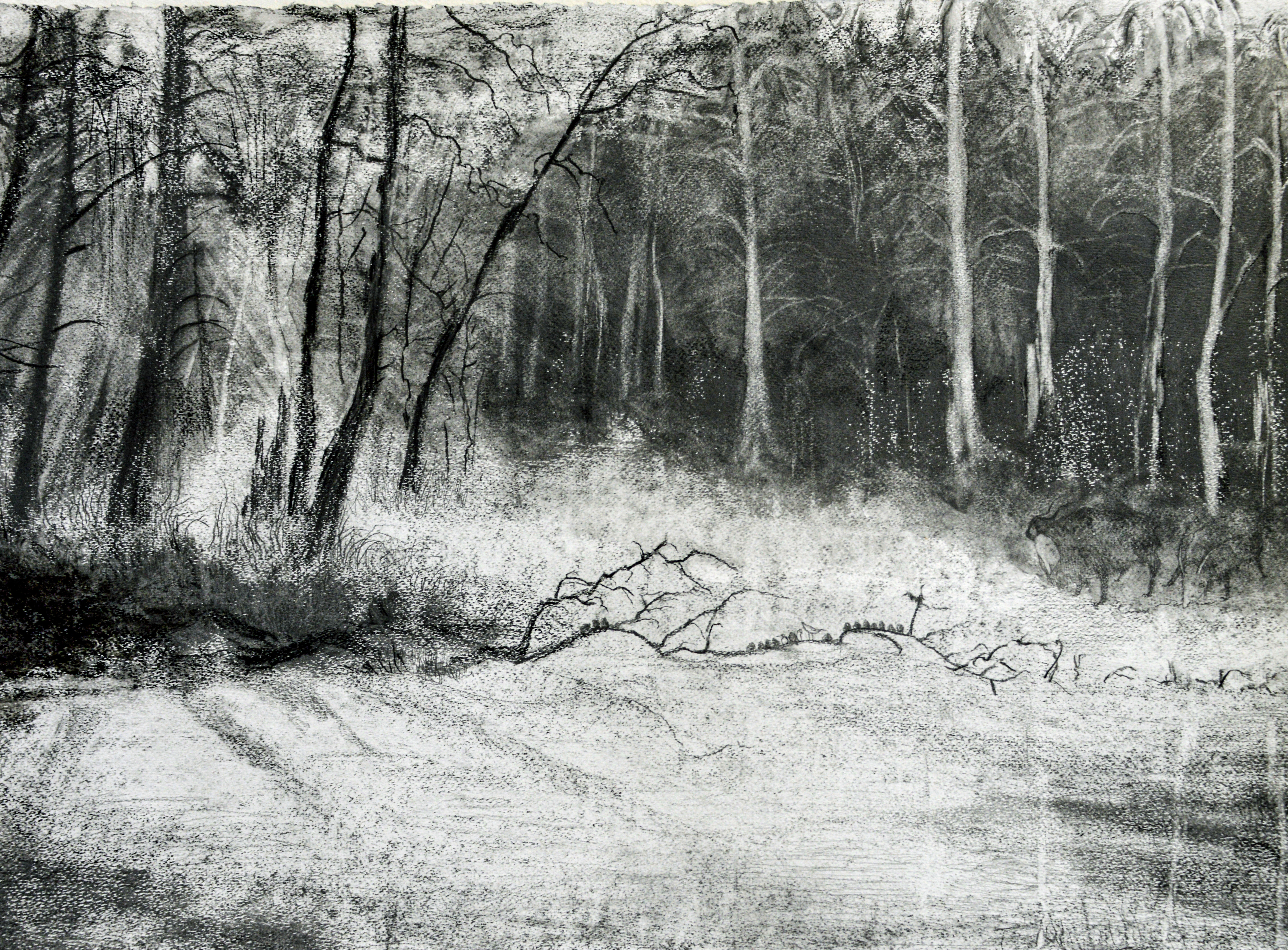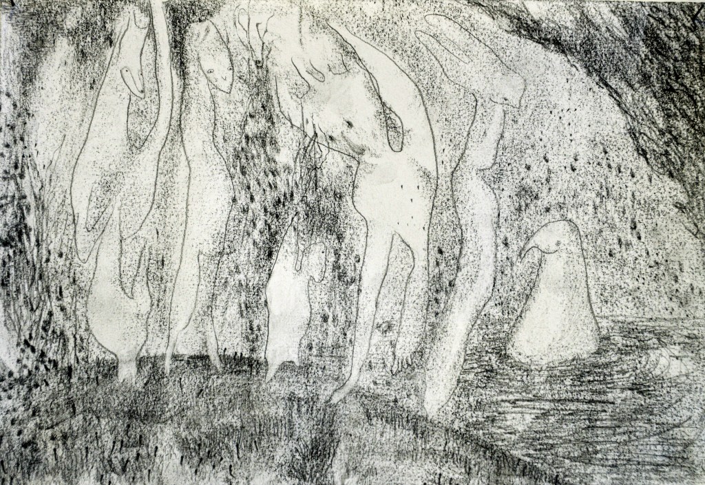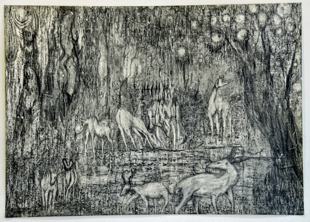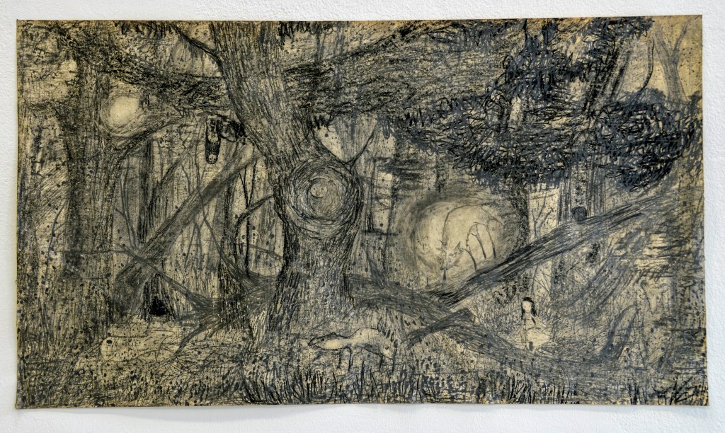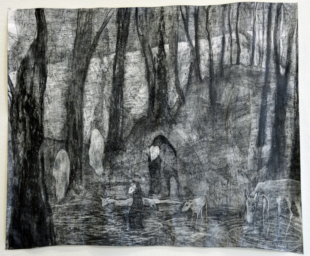 Stella Miranda Treffler, geboren 1982 in Köln ist Diplom Biologin und verschlug es nach ein paar Jahren in der Freilandökologieforschung der Liebe wegen nach Wuppertal. Sie begann 2012 ihr Kunststudium und konzentrierte sich auch hier zunächst auf Naturbeobachtungen. Nach und nach befreite sie sich von der reinen Abbildung des gesehenen und schöpft nun aus dem Inneren. Eigene Naturerfahrungen werden auf dem Papier mit phantastischen Elementen und Wesen verwoben, die man oft erst auf den zweiten Blick entdeckt. Die Darstellungen zeigen meist atmosphärische Waldszenen, in denen sich die unterschiedlichsten Bewohner begegnen. Man darf hier entdecken und staunen.